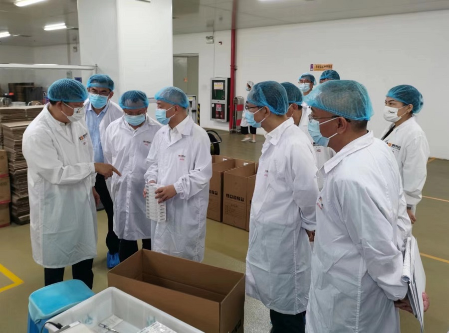 95日上午,海口市委副書記、市長丁暉帶領市政府相關部門主要負責人來到皇隆制藥調研。