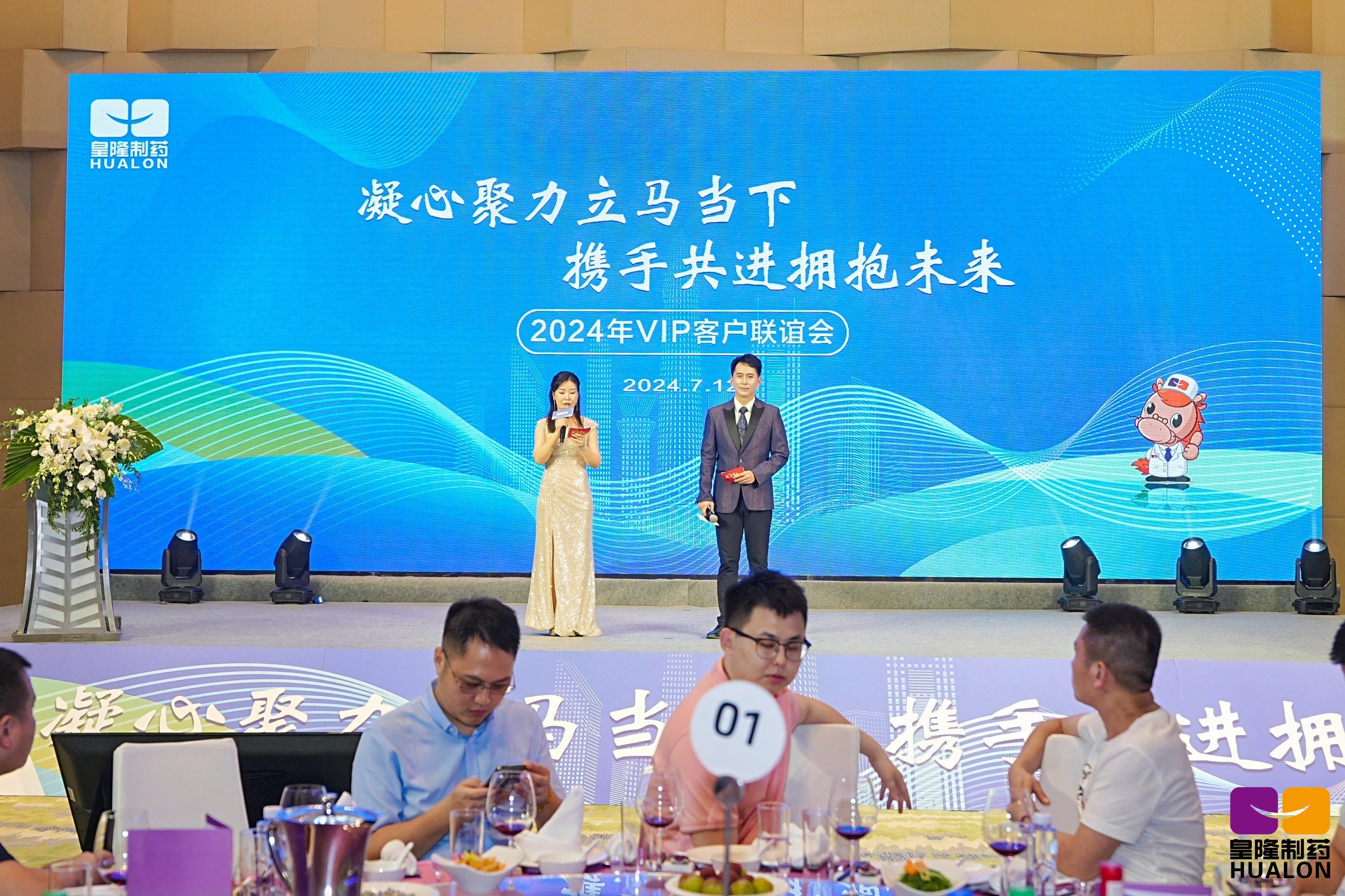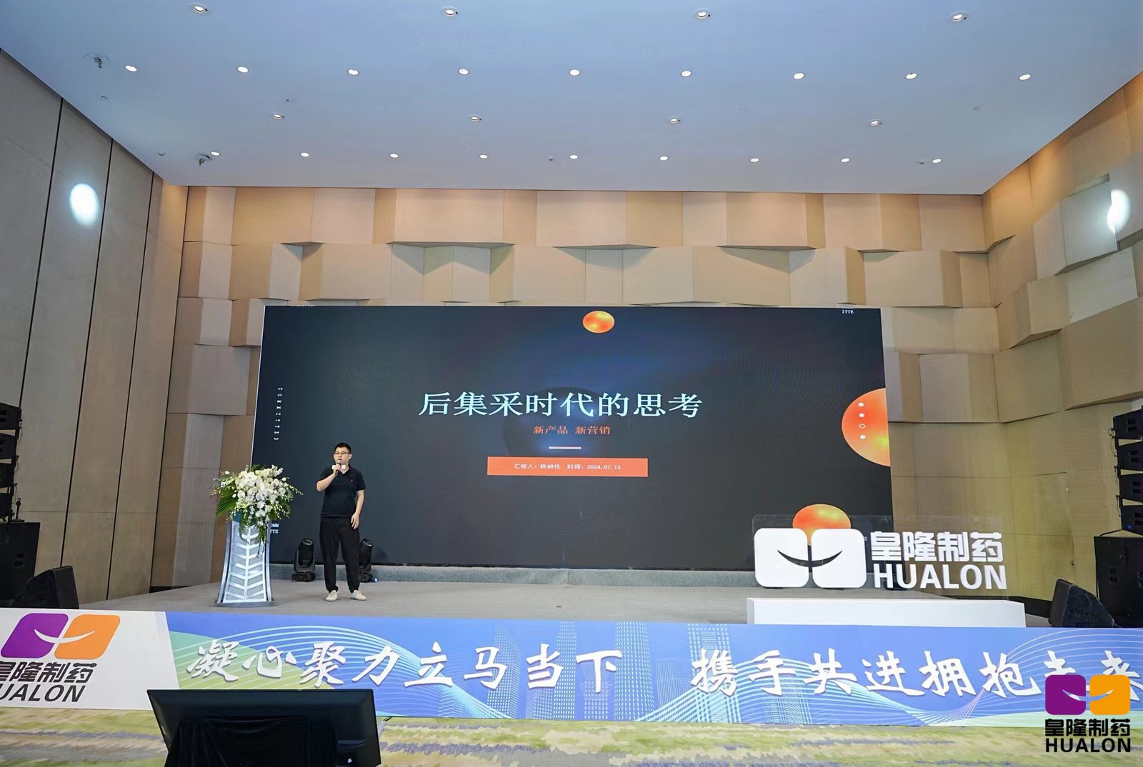 7月13日上午,公司組織全體客戶和省區經理召開產品推介及銷售政策解讀會議,皇隆制藥董事長陳益智、副總經理陳峙托、產品經理魏小杰分別做主題報告,他們分別就公司產品的優勢特點、集采產品的運營及實操、產品政策及市場前景深入剖析,為客戶展現了清晰的合作發展藍圖。會議由皇隆制藥總經理助理方海霞主持。